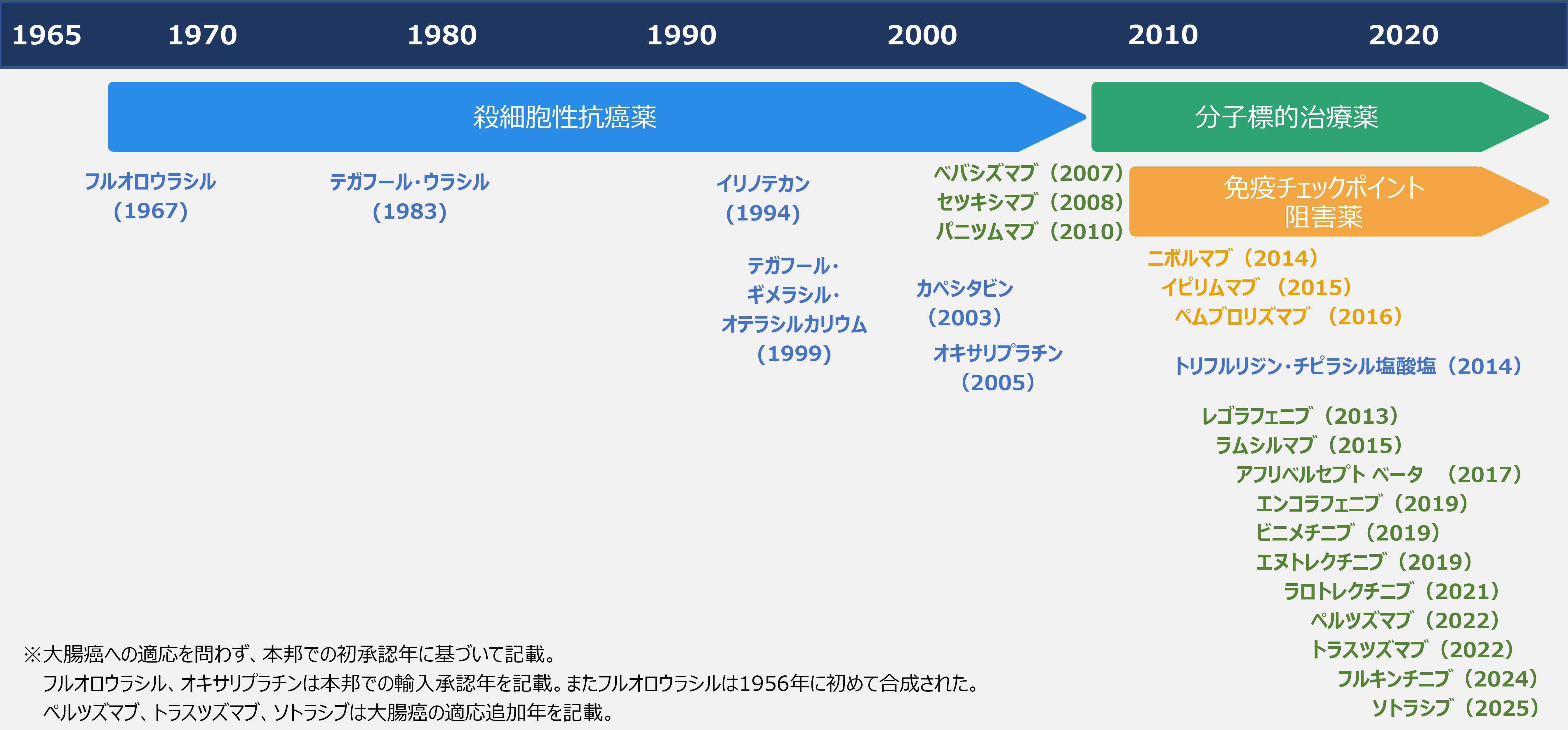 図1 大腸癌治療に用いられる主な抗癌薬開発の歴史※