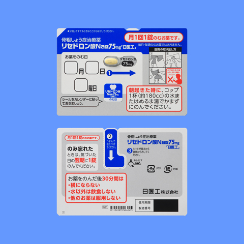 | 一般名 | リセドロン酸ナトリウム水和物 | 薬効分類 | 骨粗鬆症治療剤 | ||