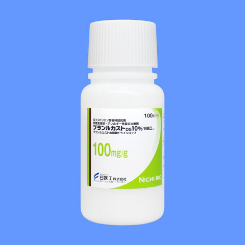 | 一般名 | プランルカスト水和物 | 薬効分類 | ロイコトリエン受容体拮抗剤 -気管支喘息・アレルギー性鼻炎治療剤- |