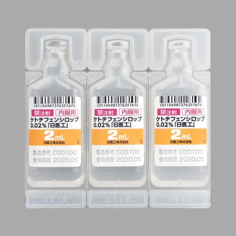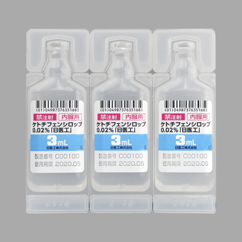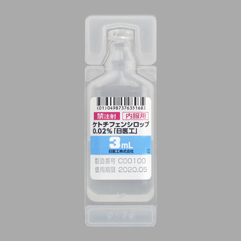 | 日医工製品 | ケトチフェンシロップ0.02%「日医工」 | 0.02%1mL | 14.50 | 日医工=高田 |