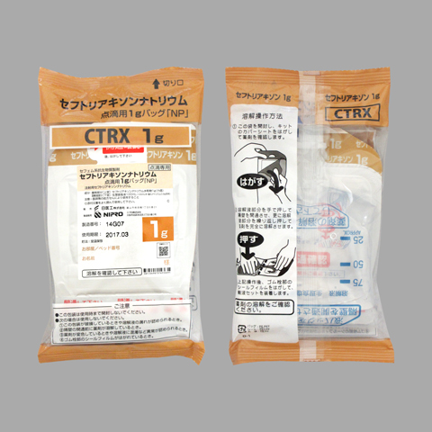 | 日医工製品 | セフトリアキソンナトリウム点滴用1gバッグ「NP」 | 1g1キット(生理食塩液100mL付) | 967 | ニプロ=日医工 |