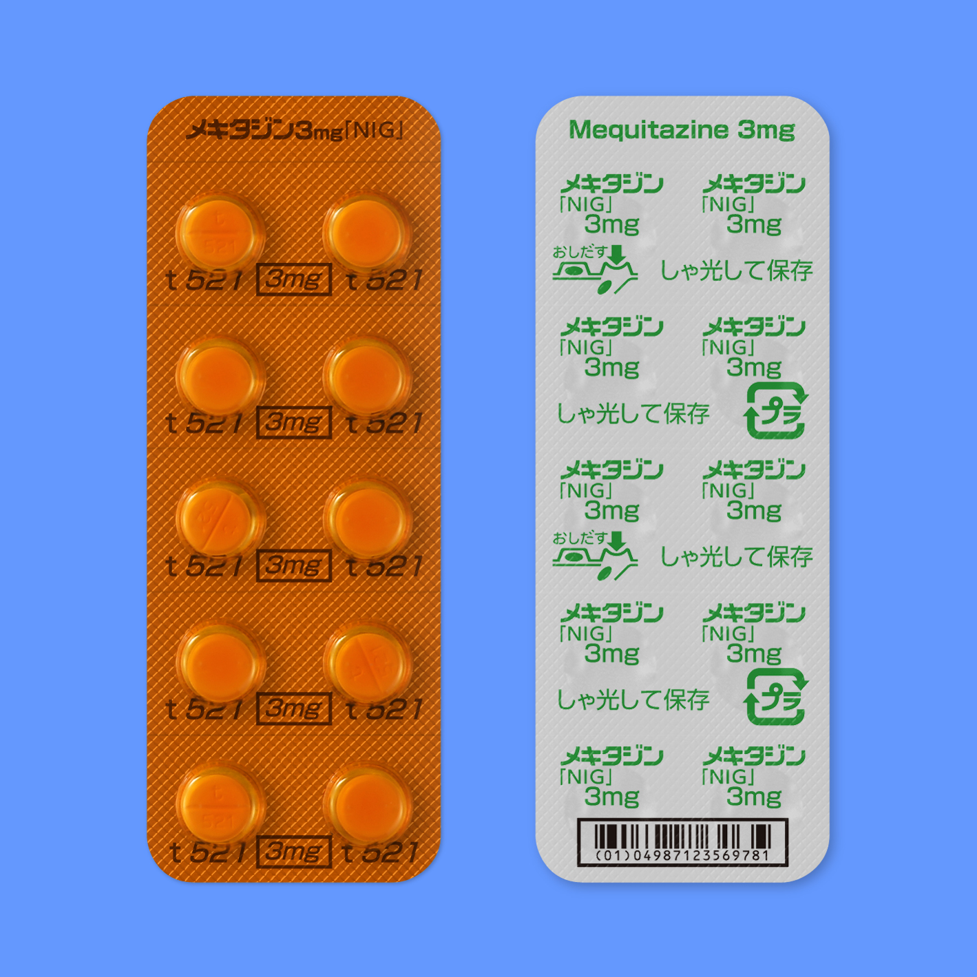 | 識別表示(本体) | t 521 | 識別表示(包装) | t 521 3mg | ||