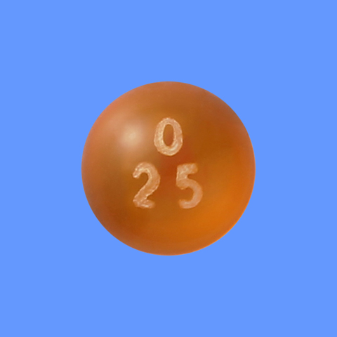 | 色・剤形 | 黄赤色の球形軟カプセル | 直径(mm) | 約7.0 | 質量(mg) | 約185 |