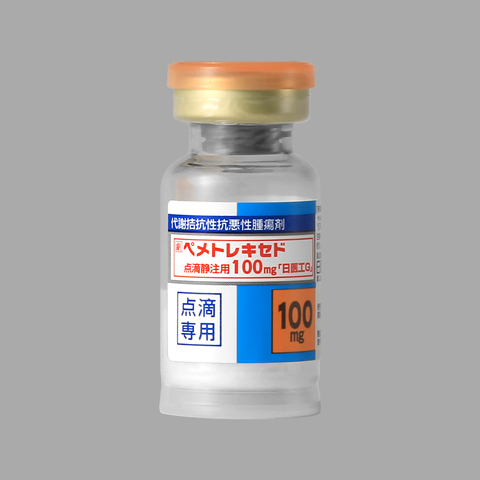 | 一般名 | ペメトレキセドナトリウムヘミペンタ水和物 | 薬効分類 | 代謝拮抗性抗悪性腫瘍剤 | ||